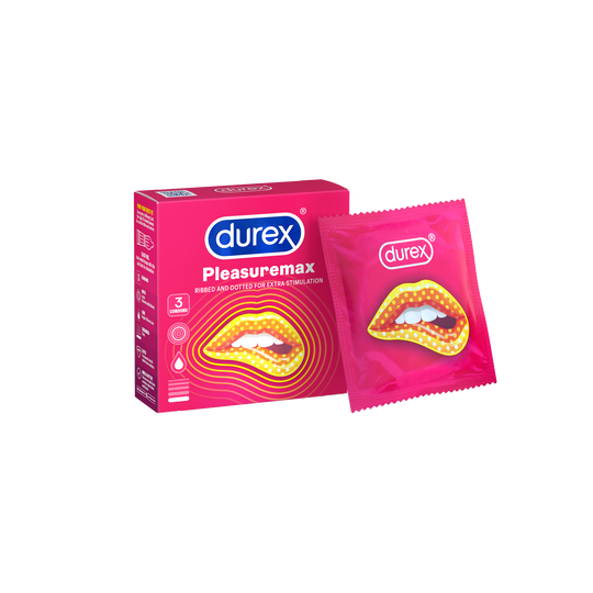 Bao cao su có gân và chấm nổi Durex Pleasuremax được thiết kế đặc biệt, hướng đến cảm nhận của nàng. Vị trí của những đường gân và chấm nổi gần miệng bao được tính toán hợp lý để tăng cường kích thích vật lý, tăng thêm khoái cảm cho nàng.