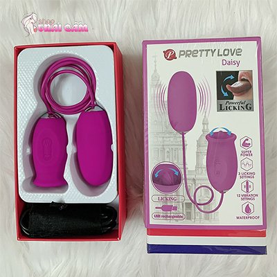 Trứng rung và liếm 2 đầu siêu kích thích PrettyLove Daisy được thiết kế giúp chị em thoải mái hơn khi tự sướng kích thích các vùng nhạy cảm trên cơ thể. Sản phẩm có 2 đầu khá đặc biệt, một đầu trứng rung masage ngưc, âm vật hay đi sâu bên trong kích thích điểm G, một đầu nữa được thiết kế như lưỡi liếm sẽ vô cùng kích thích khi vừa rung vừa liếm âm vật hay các phần nhạy cảm khác. Sản phẩm có phần dây dài nên chị em có thể thoải mái masage cùng lúc những điểm mình thích trên cơ thể, vừa được liếm âm vật, vừa đc masage ngực hay bên trong âm đạo thì còn j sung sướng hơn. Lúc đấy chị em chỉ còn biết rên rỉ trong khoái lạc, cảm giác sung sướng vỡ òa.