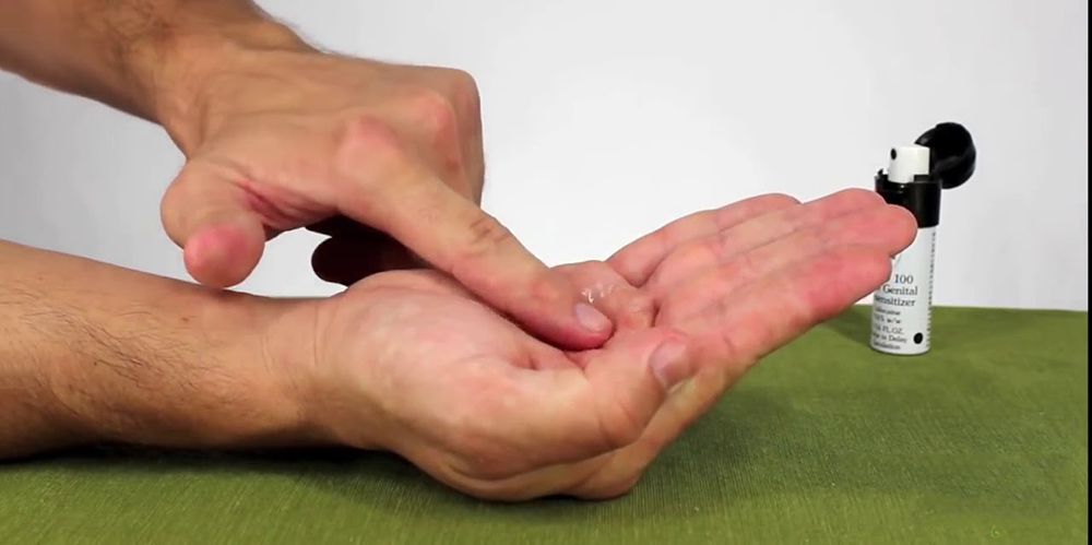 - Xịt theo chiều dài của dương vật, bắt đầu từ bao quy đầu kéo dài đến hết phần thân của dương vật.